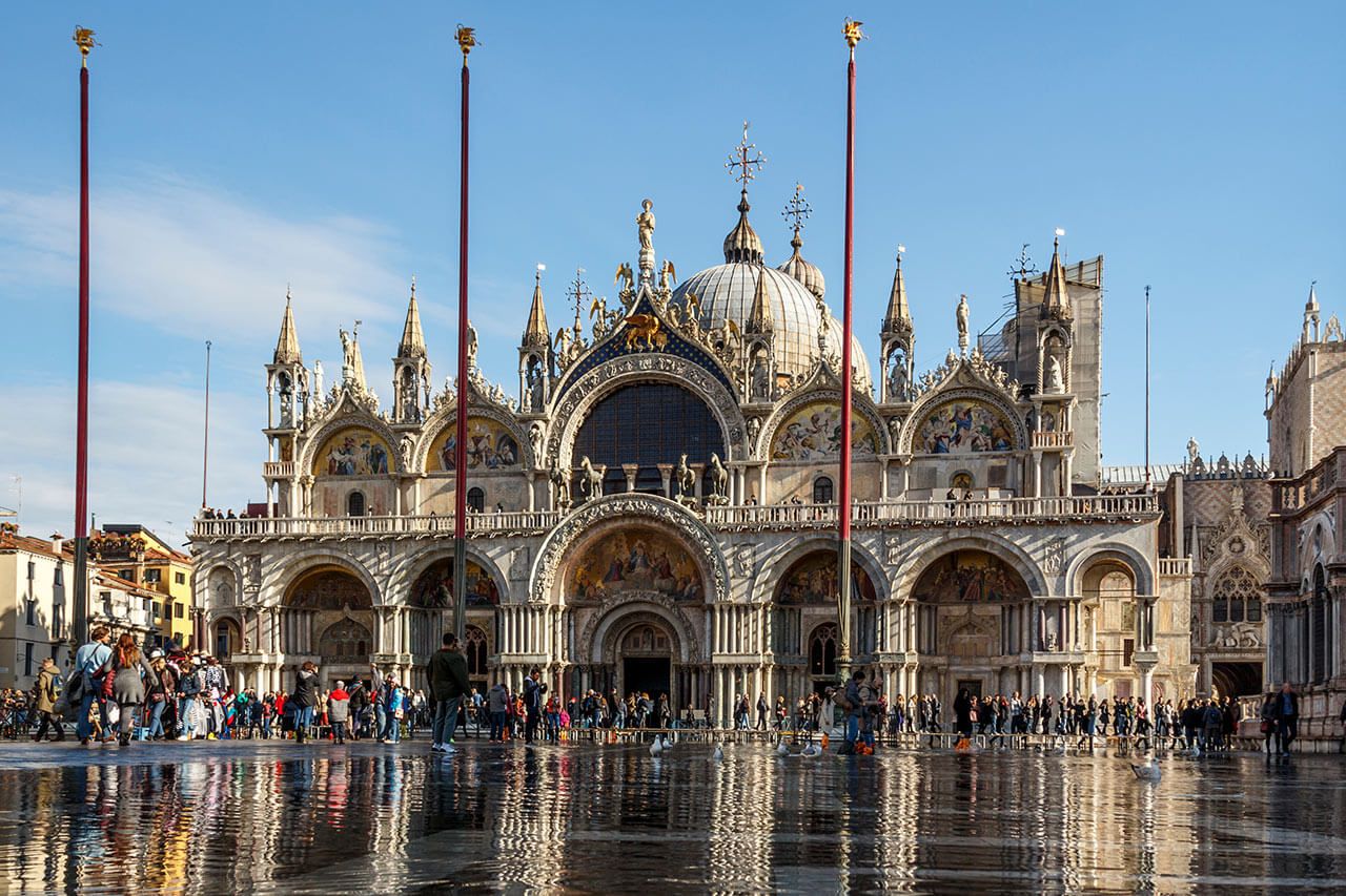Petit déjeuner et départ avec votre accompagnatrice en car en direction de Punta Sabbioni. Embarquement à bord du bateau et transfert vers la Place Saint Marco. Visite guidée du quartier de San Marco avec sa Place, la Basilique (exterieur), la tour de l'horologe, l'exterieur du Palais de Doges, le pont des soupirs... Déjeuner au restaurant. Après-midi libre pour la découverte personelle ou EN OPTION excursion facul-tative en supplément: visite guidée du Palais de Doges. En soirée retour en bateau vers Punta Sabbioni. Transfert en car en direction de l'Ho-tel dans les environs de Venezia, diner et logement.